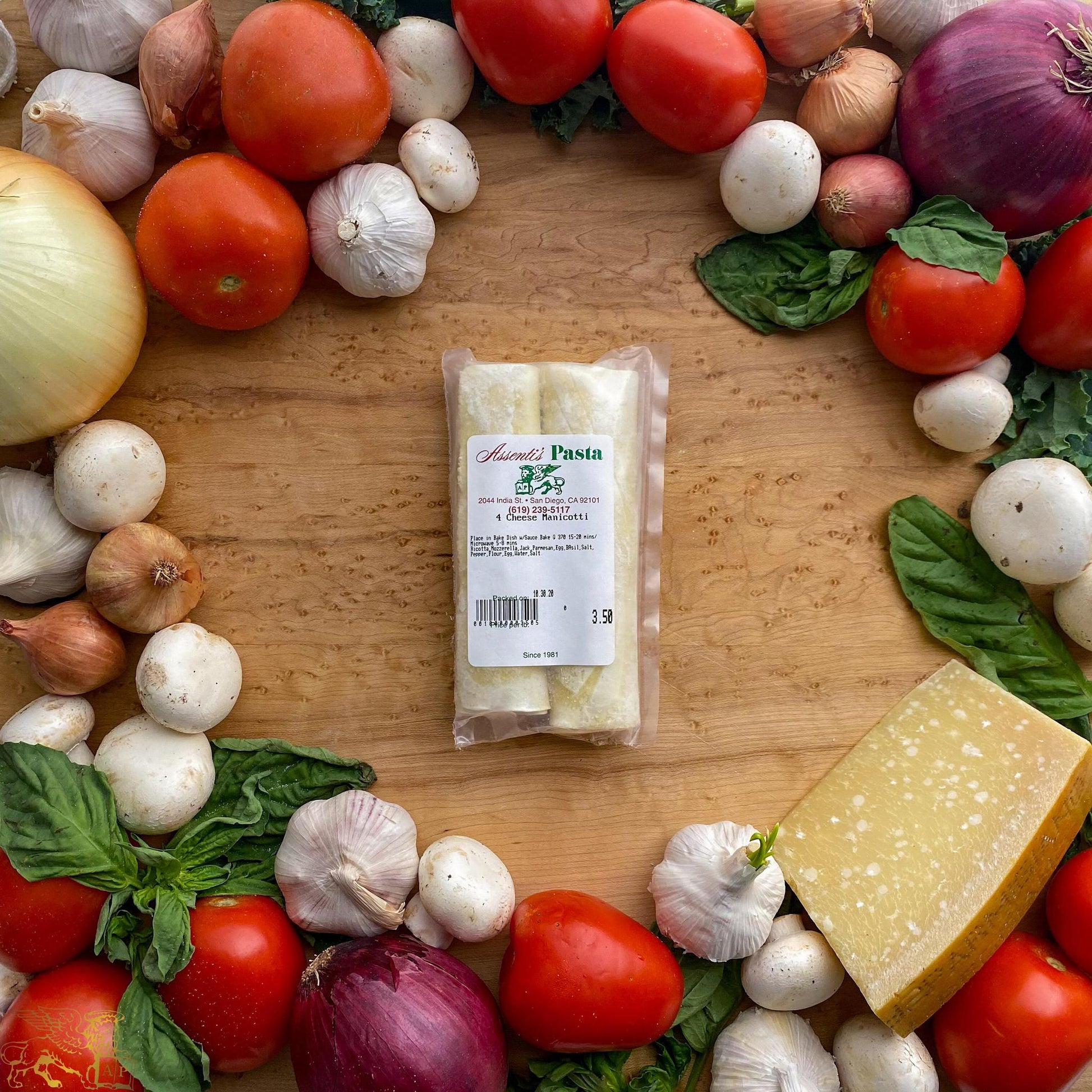 Filling: Ricotta cheese, mozzerella cheese, jack cheese, parmesean cheese, eggs, basil, salt, pepper, flour, water.