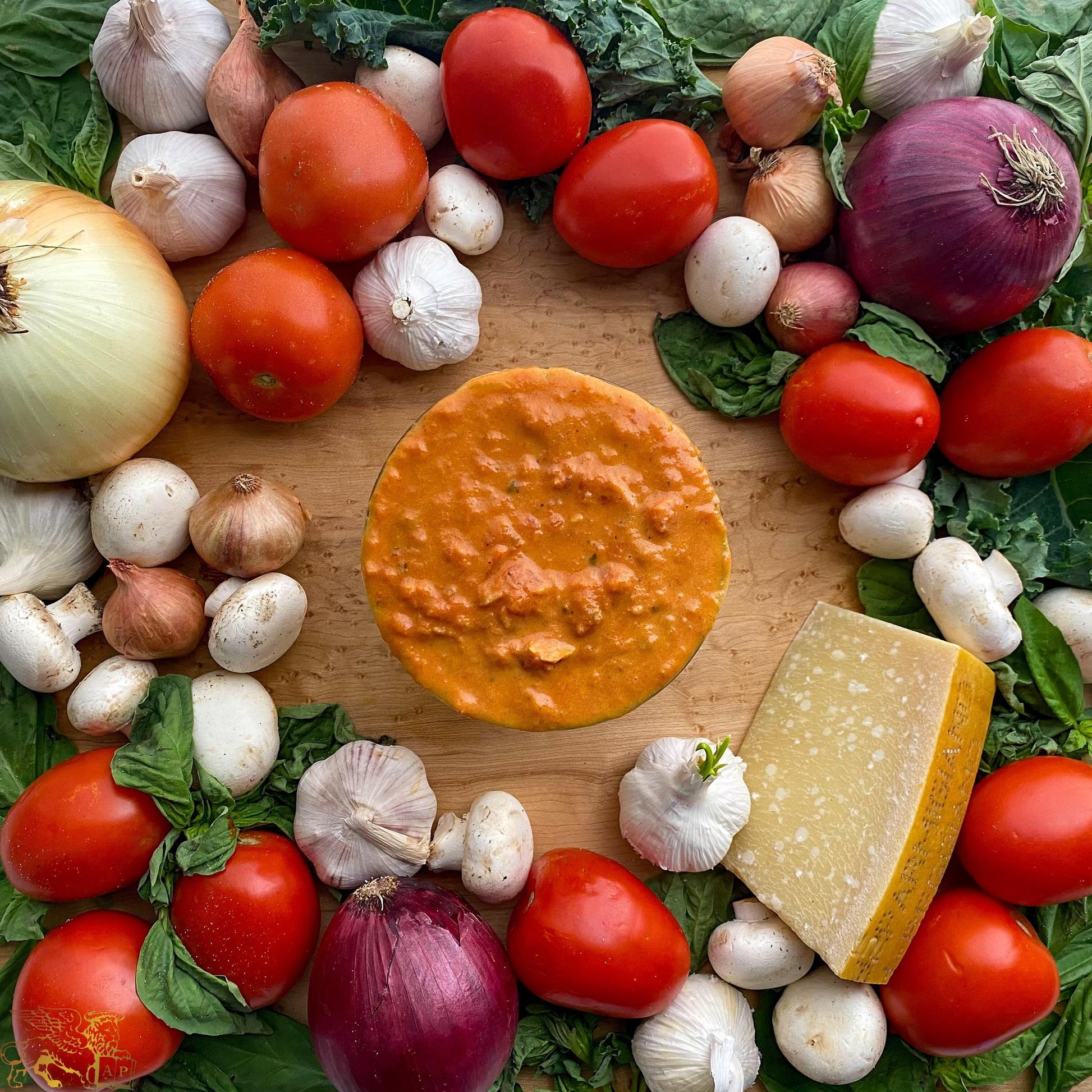Peeled tomato filets, heavy cream, olive oil, butter, vermouth, garlic, parsley, salt, pepper.