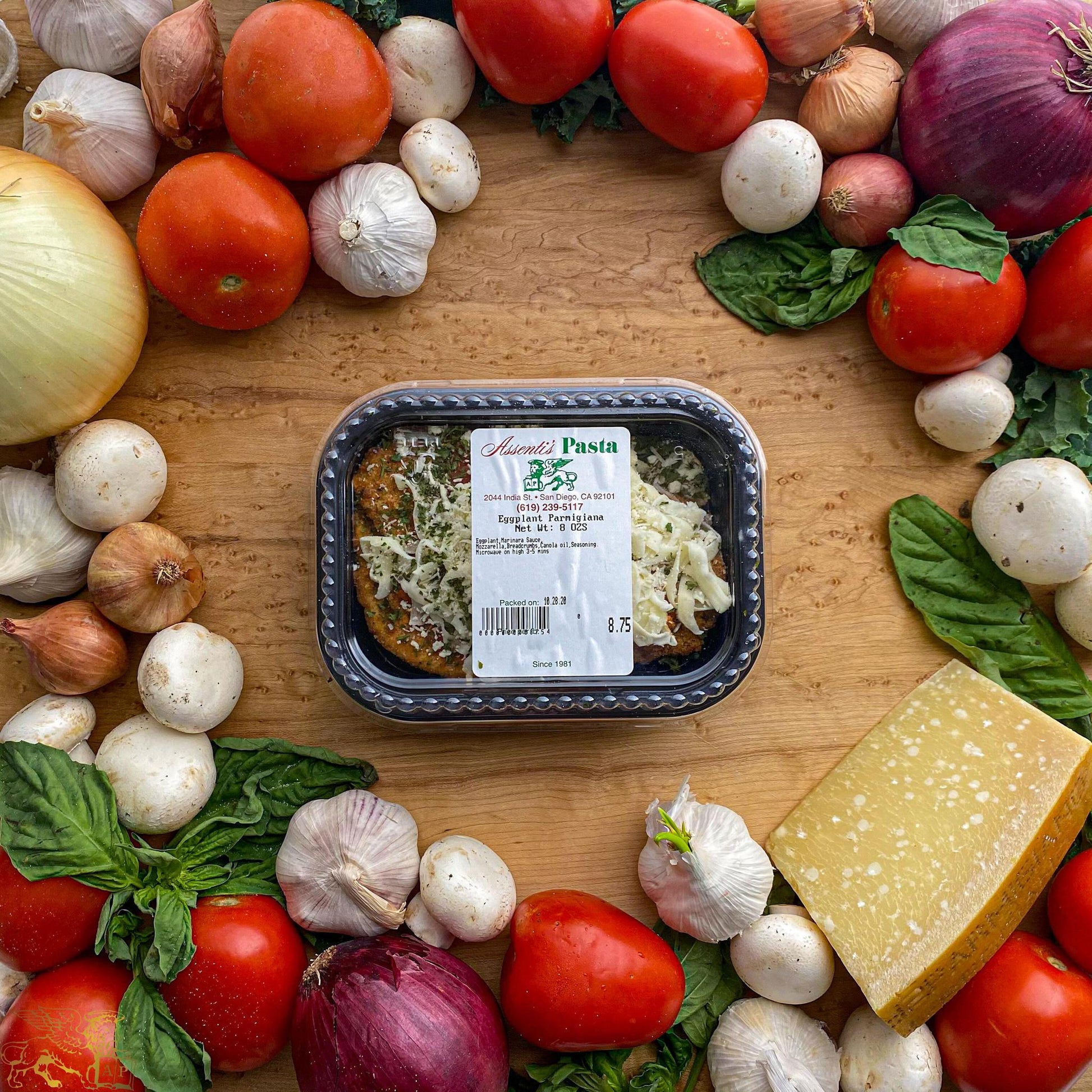 Eggplant, marinara sauce, mozzarella, breadcrumbs, canola oil, seasonings.