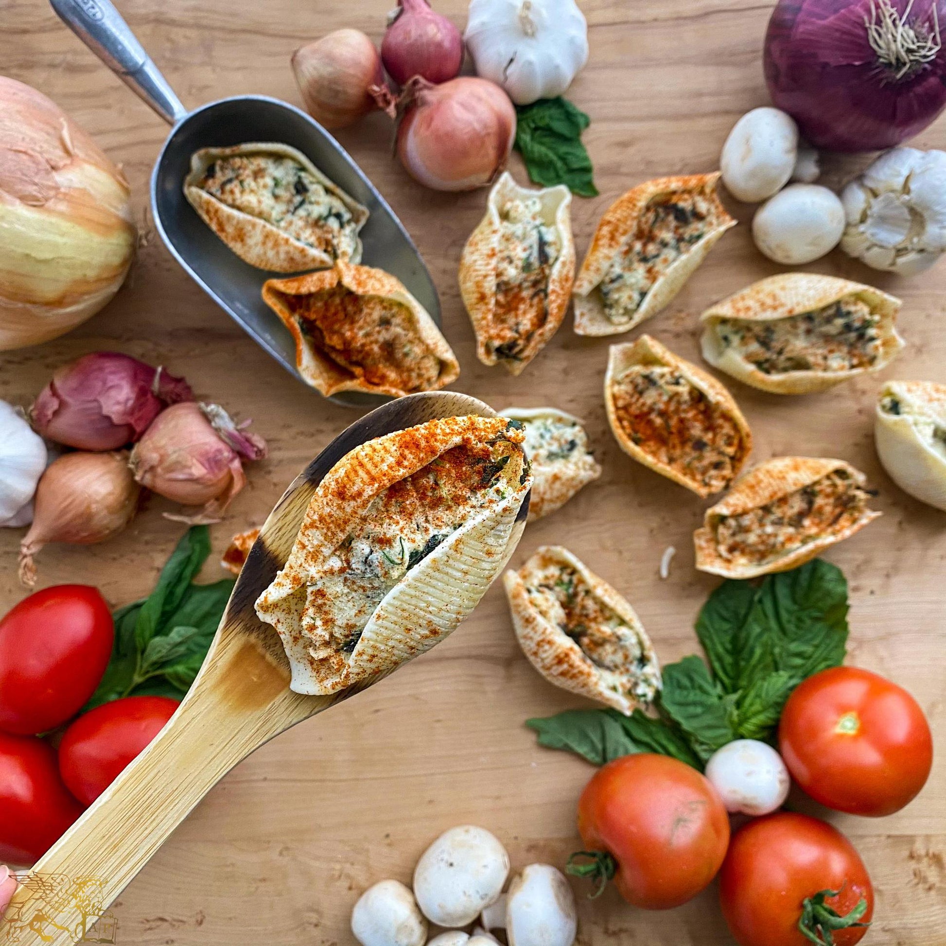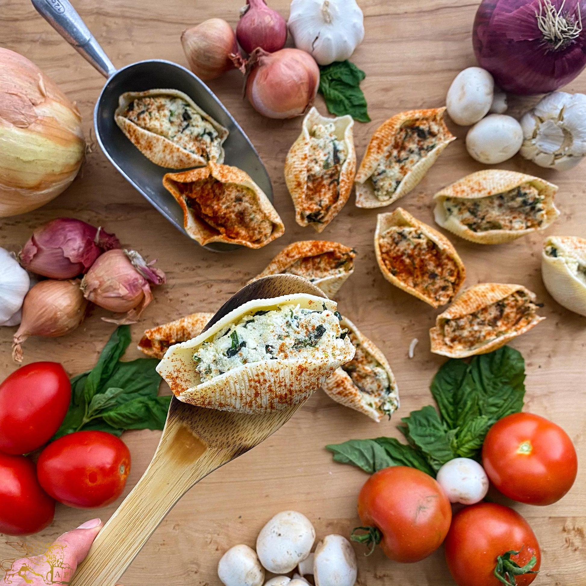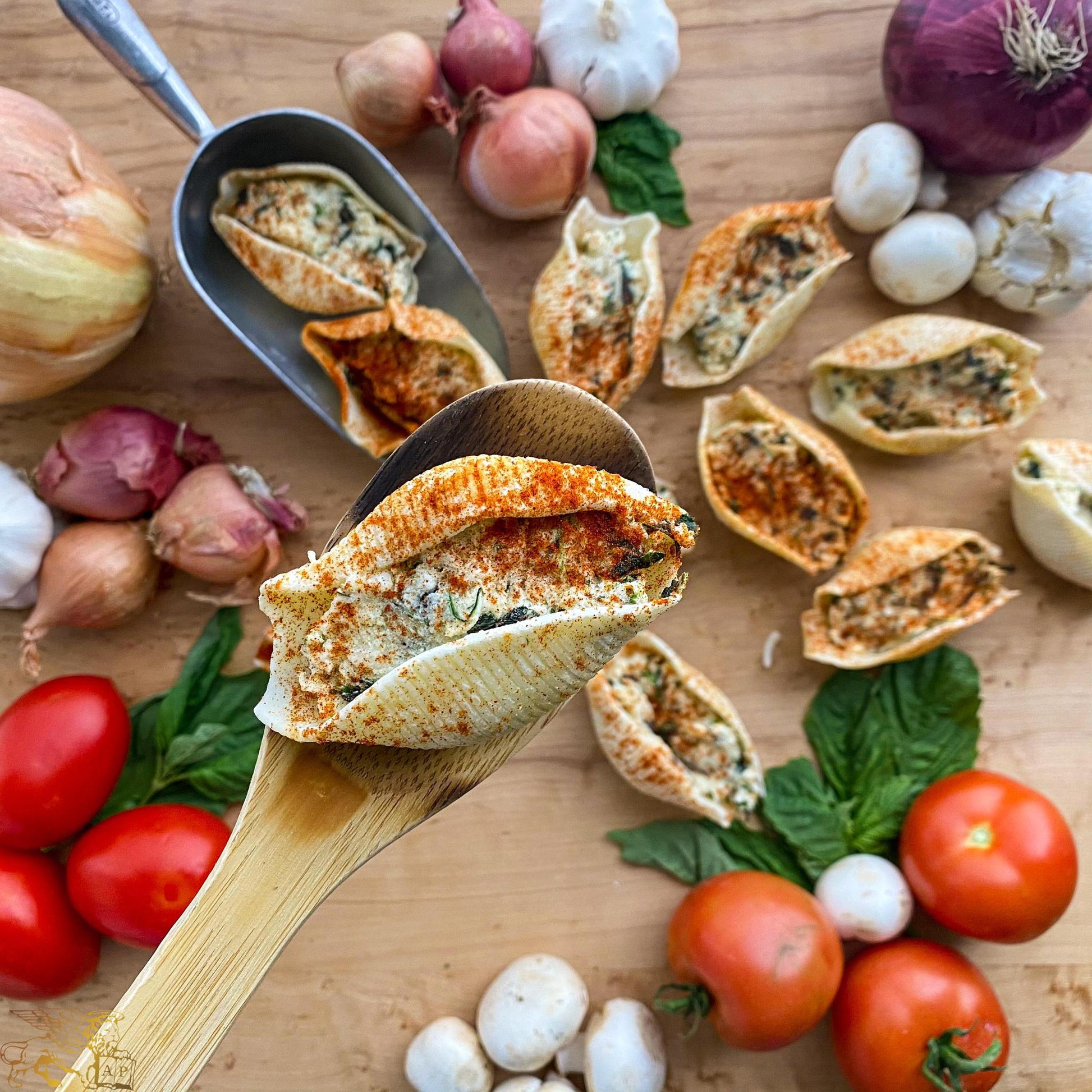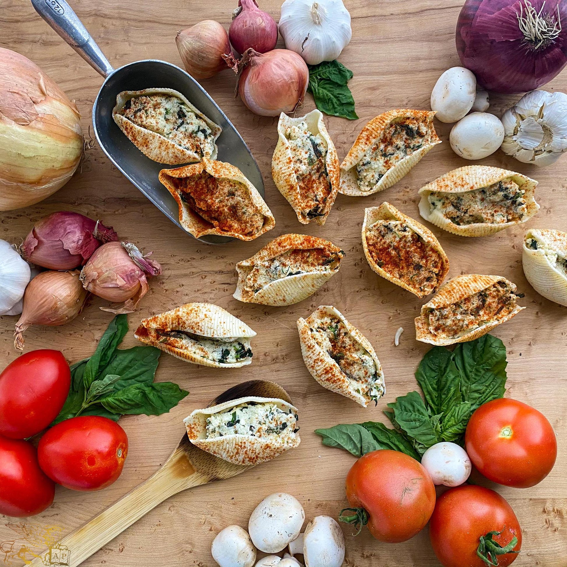 Filling: Assenti's Pasta Stuffed Shell Filling (Ricotta cheese, mozzarella cheese, spinach, onion, spices.)