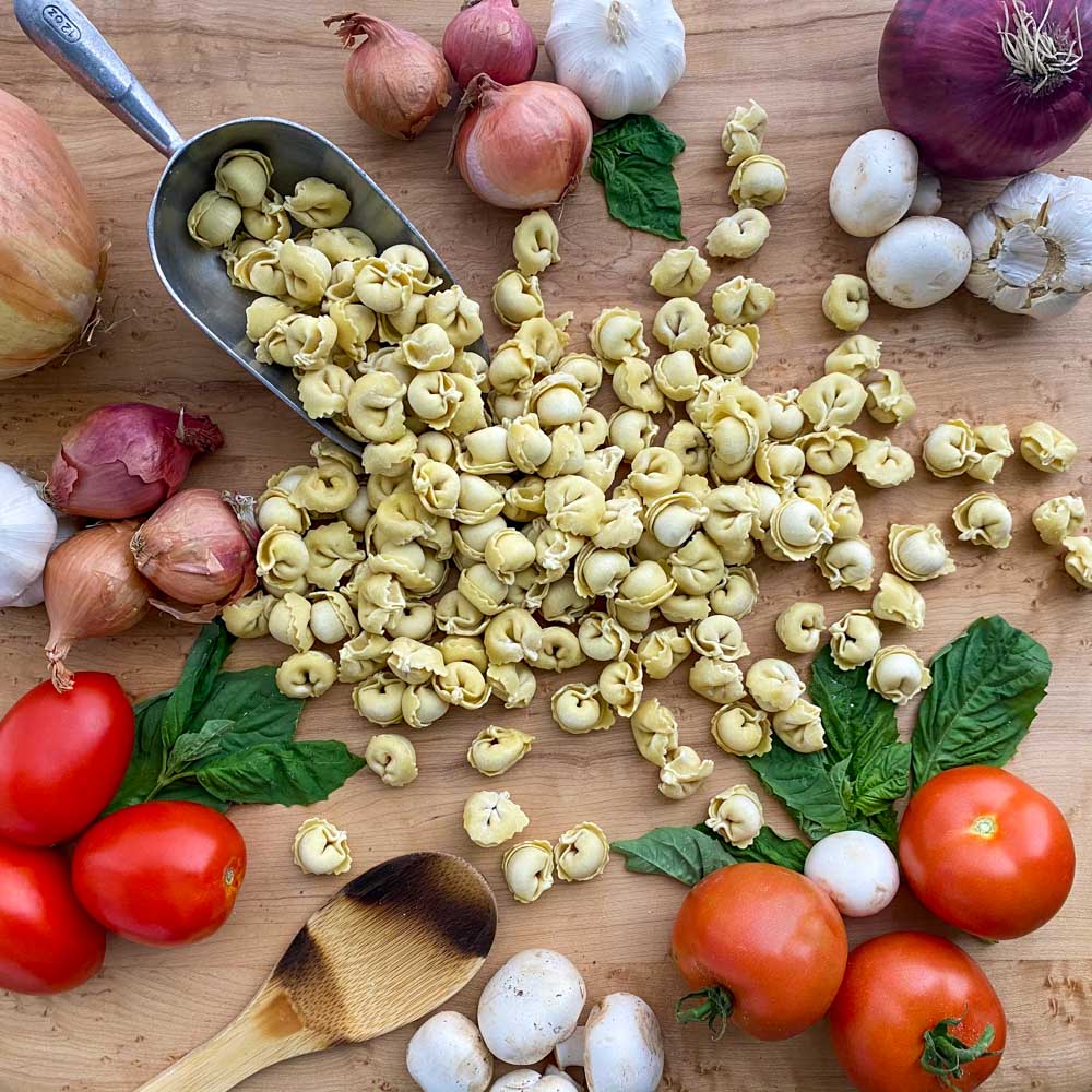 Our pasta is made fresh daily with GMO-free grains, and all of our flavored and vibrantly colored pasta is sourced from vegetable ingredients.