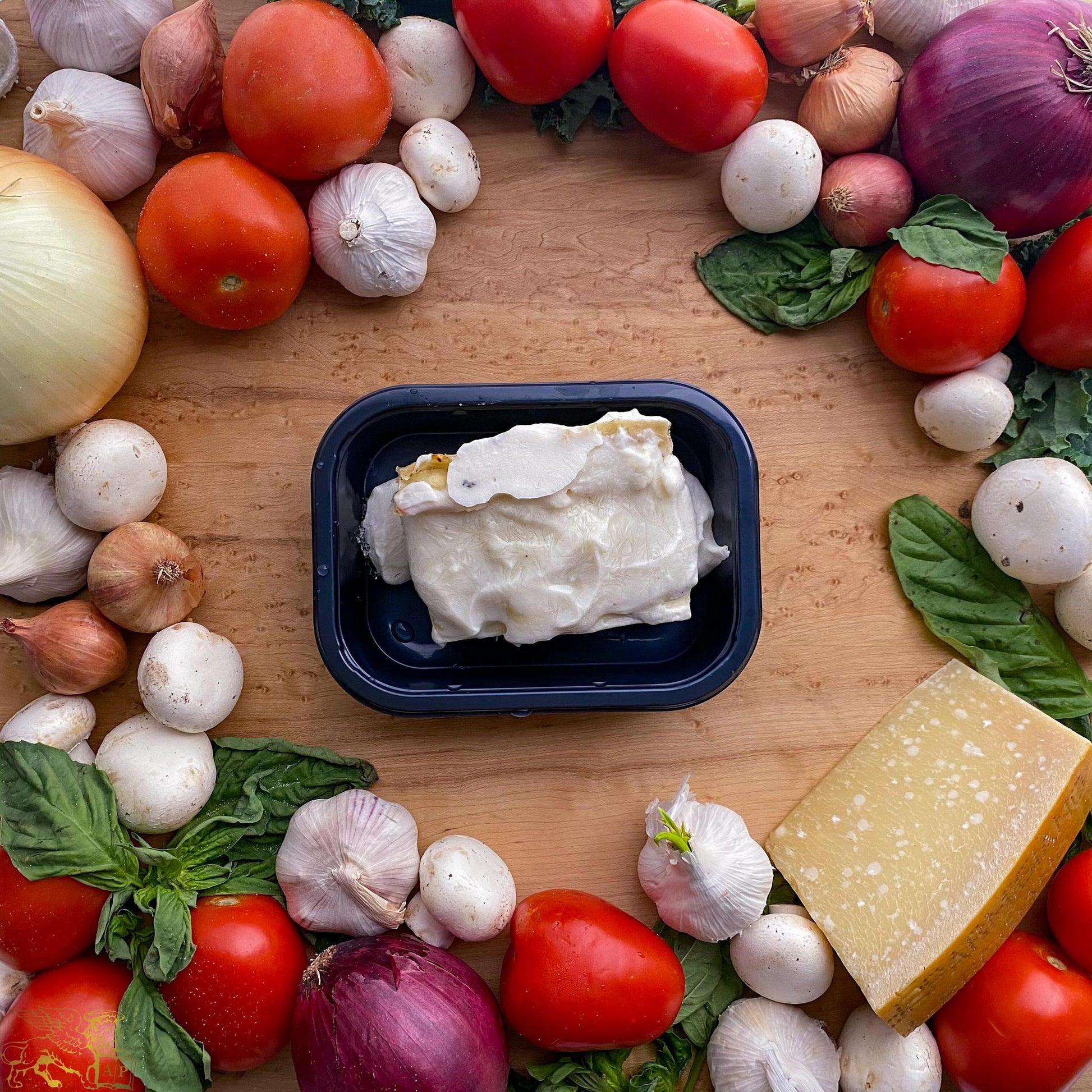 Pasta: Non-GMO Semolina #1, Non-GMO Neapolitan 00 flour, eggs, water, salt.