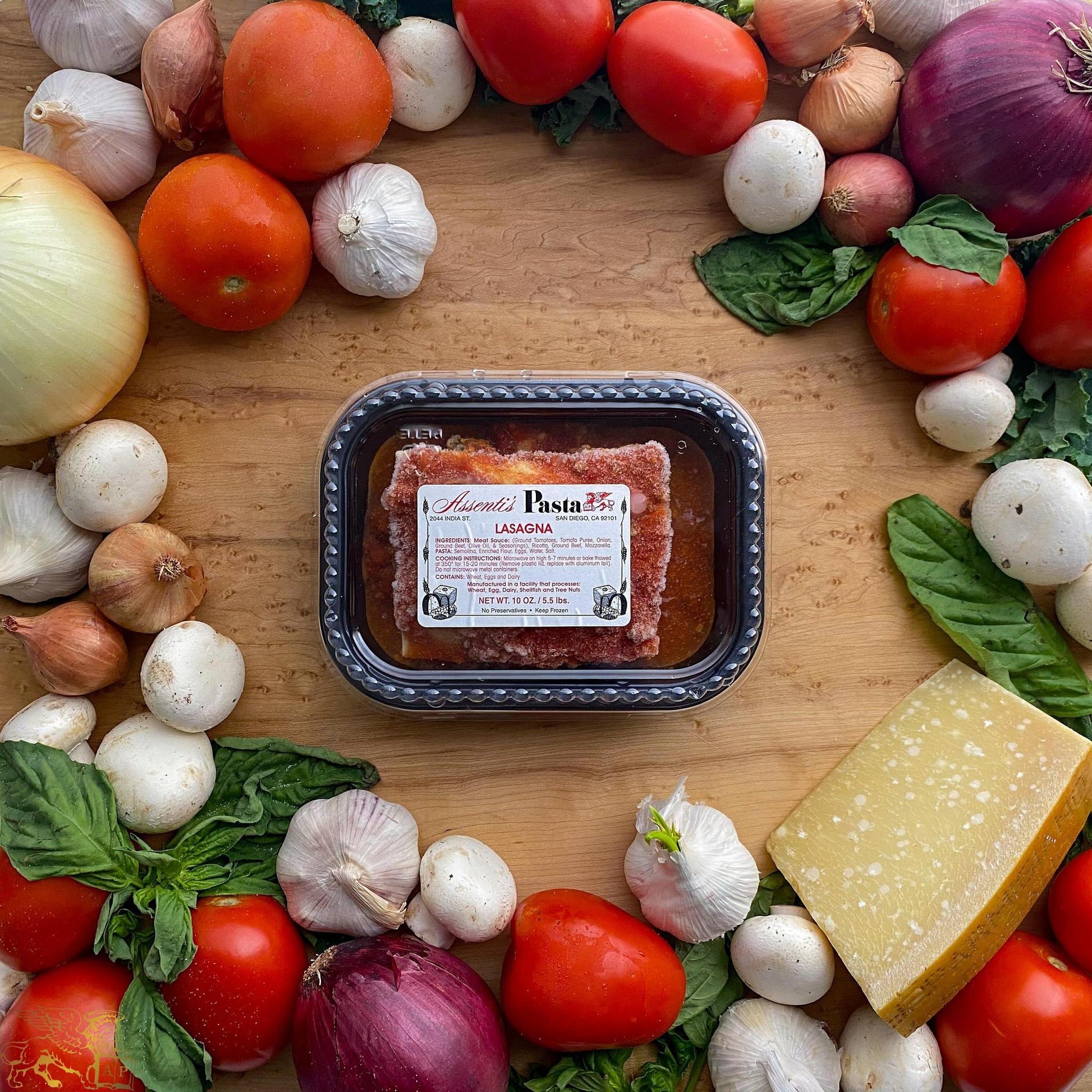 Pasta: Non-GMO Semolina #1, Non-GMO Neapolitan 00 flour, eggs, water, salt.