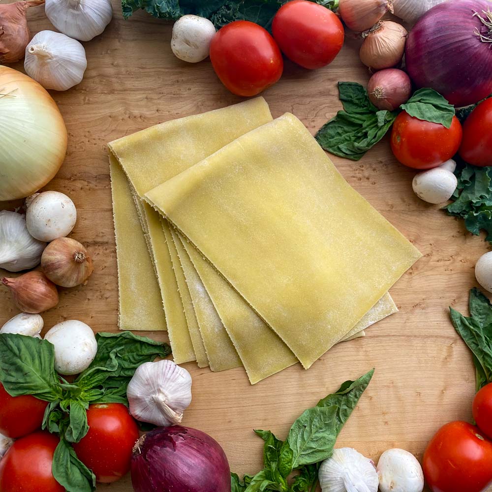 Our pasta is made fresh daily with GMO-free grains, and all of our flavored and vibrantly colored pasta is sourced from vegetable ingredients.